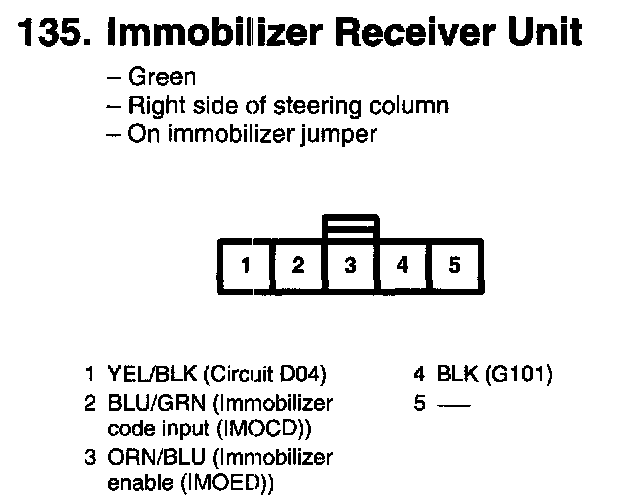 135. Immobilizer Receiver Unit: