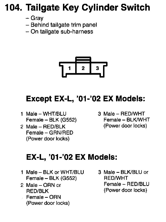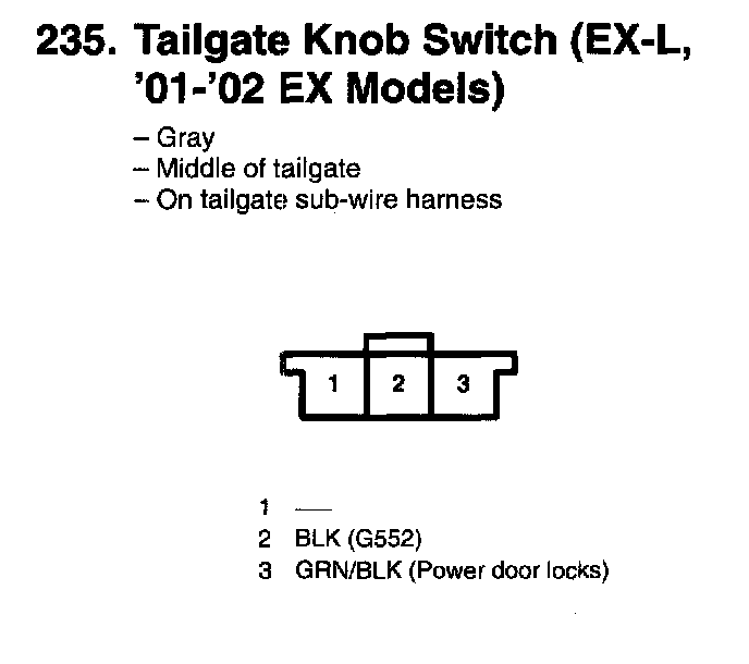 235. Tailgate Knob Switch (EX-L, EX Models):