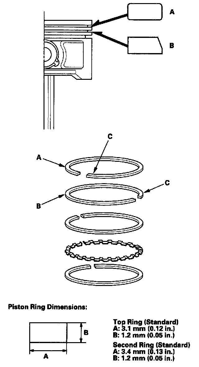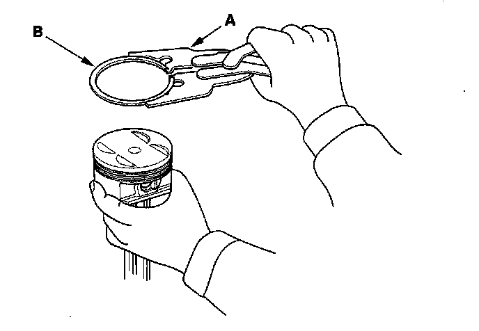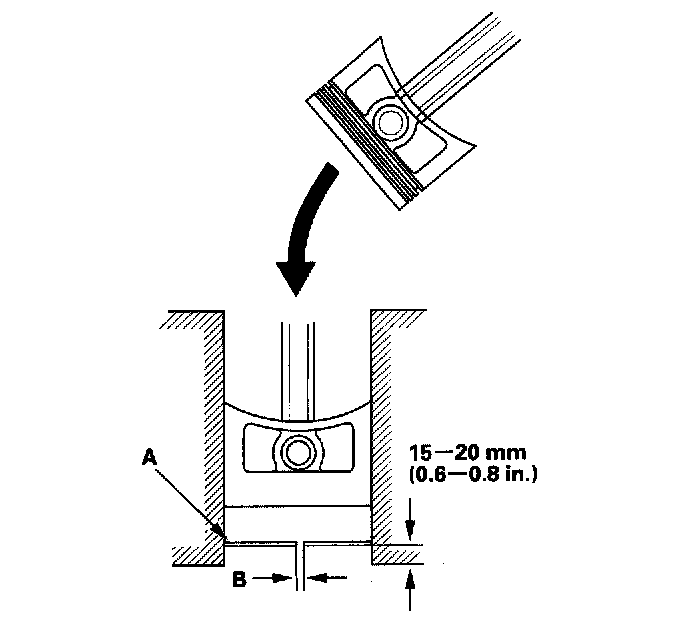 5. Measure the piston ring end-gap (B) with a feeler gauge: