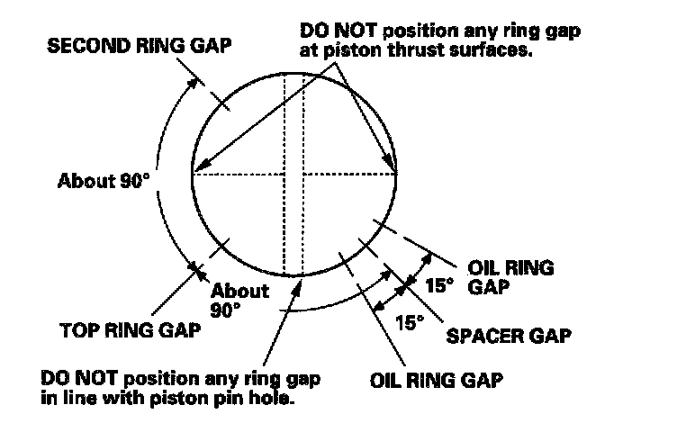 8. Position the ring end gaps as shown: