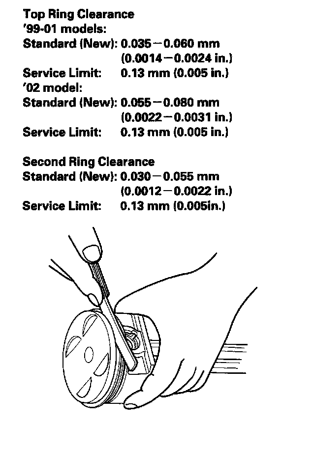 9. After installing a new set of rings, measure the ring-to-groove clearance: