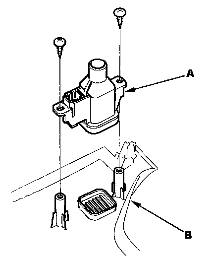 2. Remove the self-tapping screws and the in-car temperature sensor (A) from the dashboard lower cover (B).