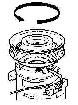 2. Check the pulley bearing play and drag by rotating the pulley by hand. Replace the clutch set with a new one if it is noisy or has excessive play/drag.