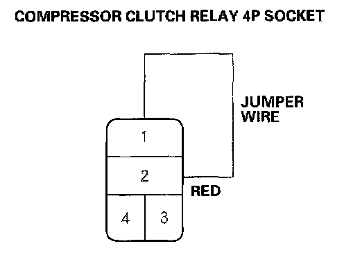 5. Connect the No.1 and No.2 terminals of the compressor clutch relay 4P socket with a jumper wire.