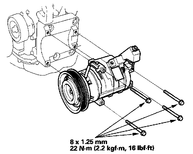 10. Install the compressor in the reverse order of removal, and note these items: