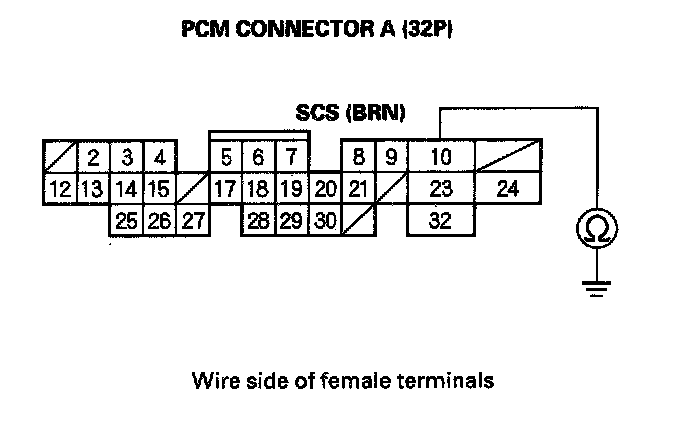 30. Check for continuity between PCM connector terminal A10 and body ground.