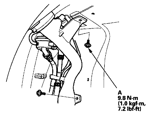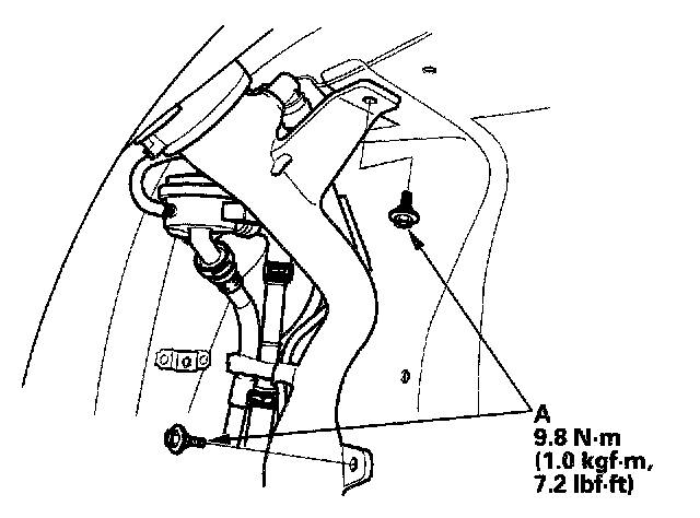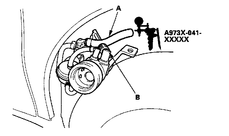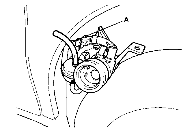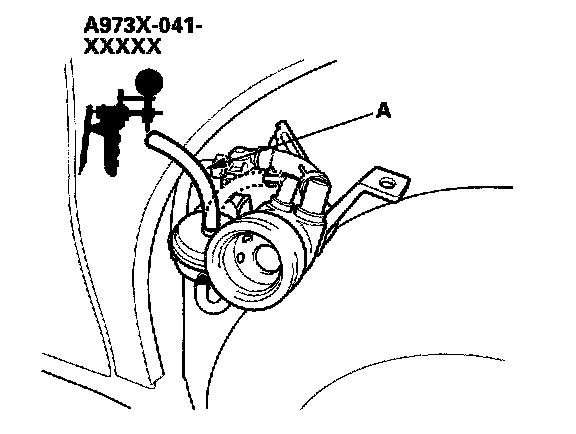 7. Apply vacuum to the fuel tank vapor recirculation tube (A).