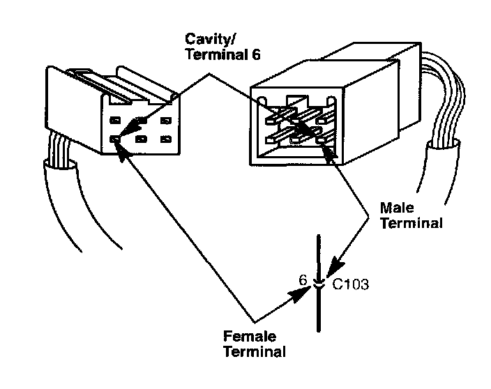 The connector cavity number is listed next to each terminal on the circuit schematic. The cavity/terminal shown below is #6.