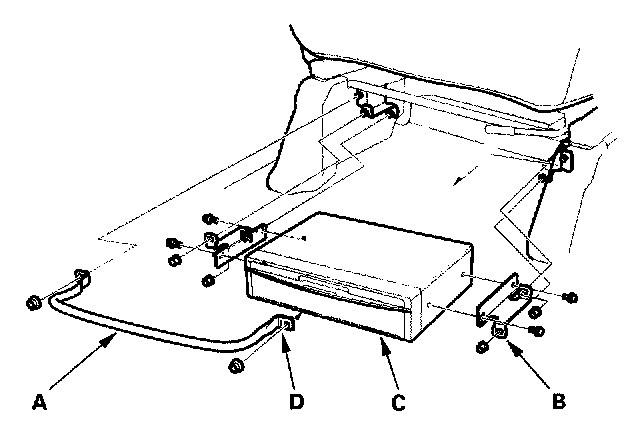 2. Remove the navigation unit bracket (B) from the passenger's seat.