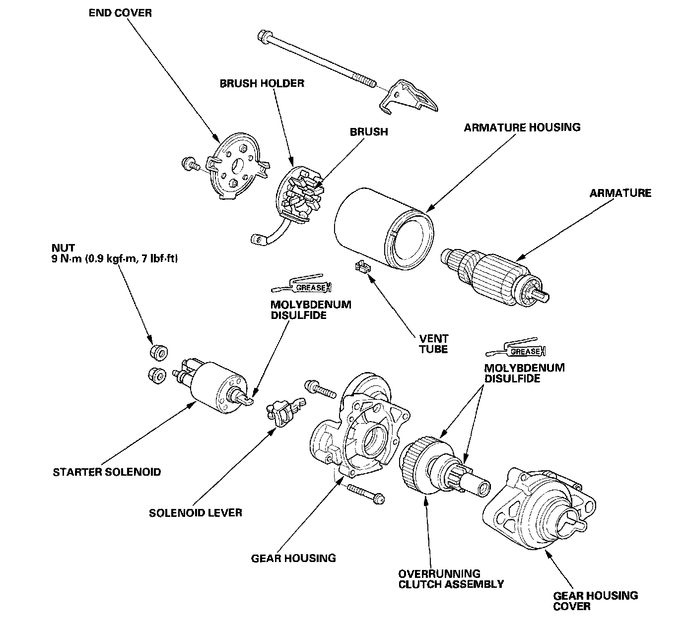 2. Disassemble the starter as shown at the beginning of this procedure.