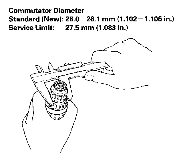 5. Check the commutator diameter. If the diameter is below the service limit, replace the armature.