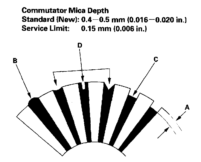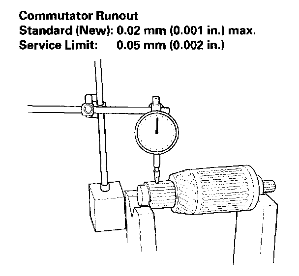 - If the commutator runout is within the service limit, check the commutator for carbon dust or brass chips between the segments.