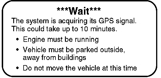 The navigation system must be allowed to initialize itself before use. During initialization, the system establishes communication with several GPS satellites. When initialization is complete, the system can "locate" itself and function normally. To initialize the system, follow this procedure.