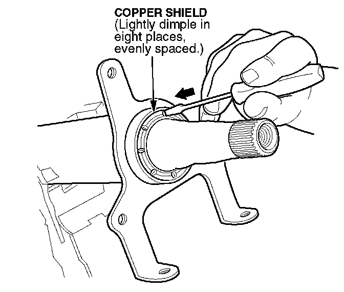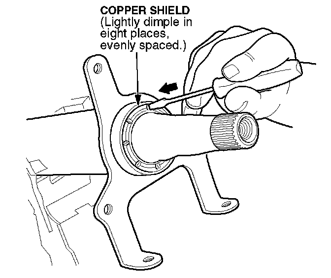 Dimple the copper shield on the steering column ball bearing in eight places.