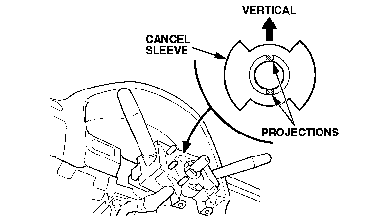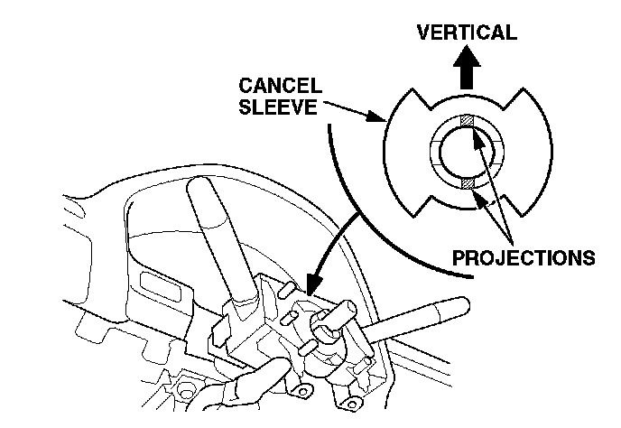 17. Position the cancel sleeve on the combination switch assembly so that the projections on the sleeve are aligned vertically.