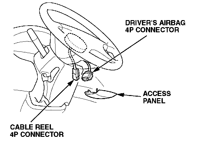 23. 1998-00 models: Reconnect the 2P cable reel connector to the driver's airbag 2P connector. 2001-02 models: Reconnect the 4P cable reel connector to the driver's airbag 4P connector.