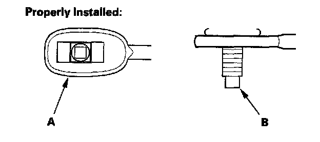 20. Verify that the shift cable end (A) is properly installed on the mounting stud (B).