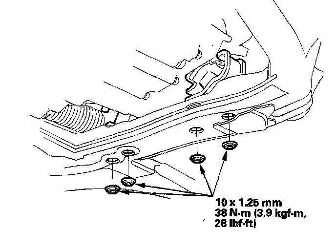 9. Lower the transmission, then install the transmission lower mount nuts.