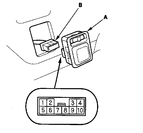 2. Disconnect the 10P connector (B) from the power mirror switch (A).