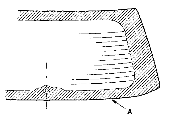 9. If the old rear window will be reinstalled, use a putty knife to scrape off all of the old adhesive and rubber dam from the rear window. Clean the shaded portion of the rear window (A) with alcohol where new adhesive is to be applied. Make sure the bonding surface is kept free of water, oil and grease.