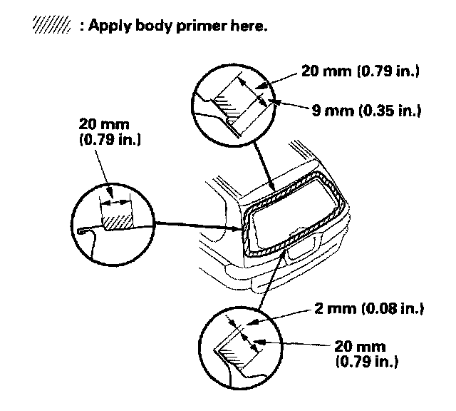 - Never touch the primed surfaces with your hands. If you do, the adhesive may not bond to the rear window properly, causing a leak after the rear window is installed.