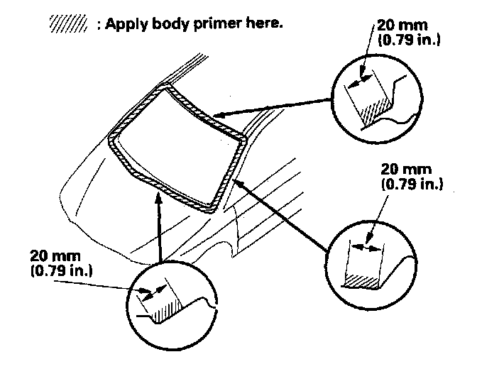 - Never touch the primed surfaces with your hands. If you do, the adhesive may not bond to the windshield properly, causing a leak after the windshield is installed.