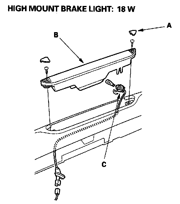 High Mount Brake Light Replacement1. Remove the caps (A) from the high mount brake light (B) with a small screwdriver.