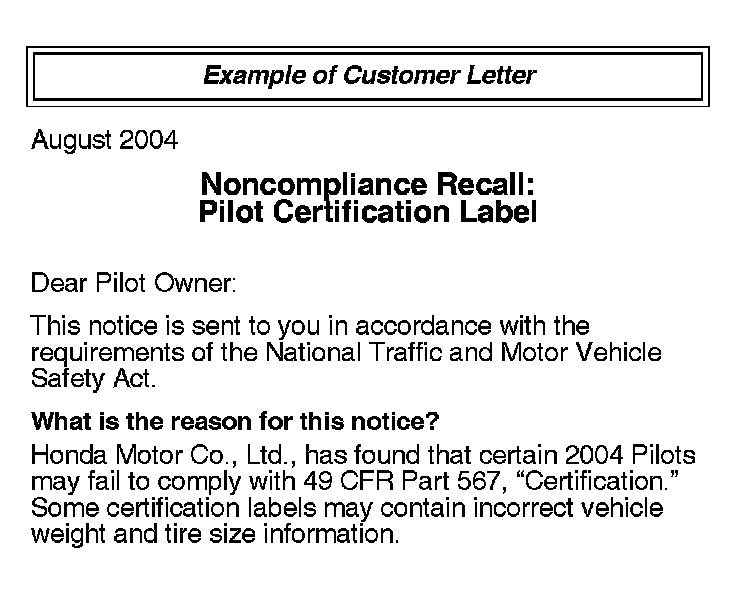 All owners of affected vehicles will be mailed a notification of this recall. In the notification, owners are asked to inspect the certification label and, if it has incorrect information, return to their dealer to have a correction sticker installed. An example of the customer notification is at the end of this service bulletin.