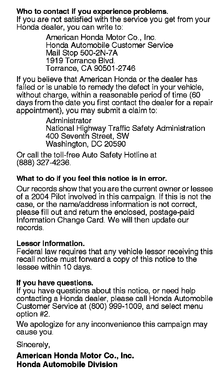 2004 Pilot EX/EX-L models - From VIN 5FNYF1...4B000041 thru 5FNYF1...4B006243