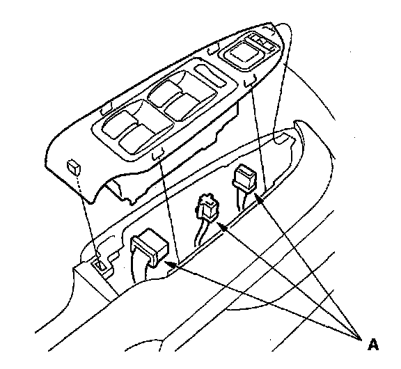 2. Disconnect the power mirror and power window switch connectors (A).