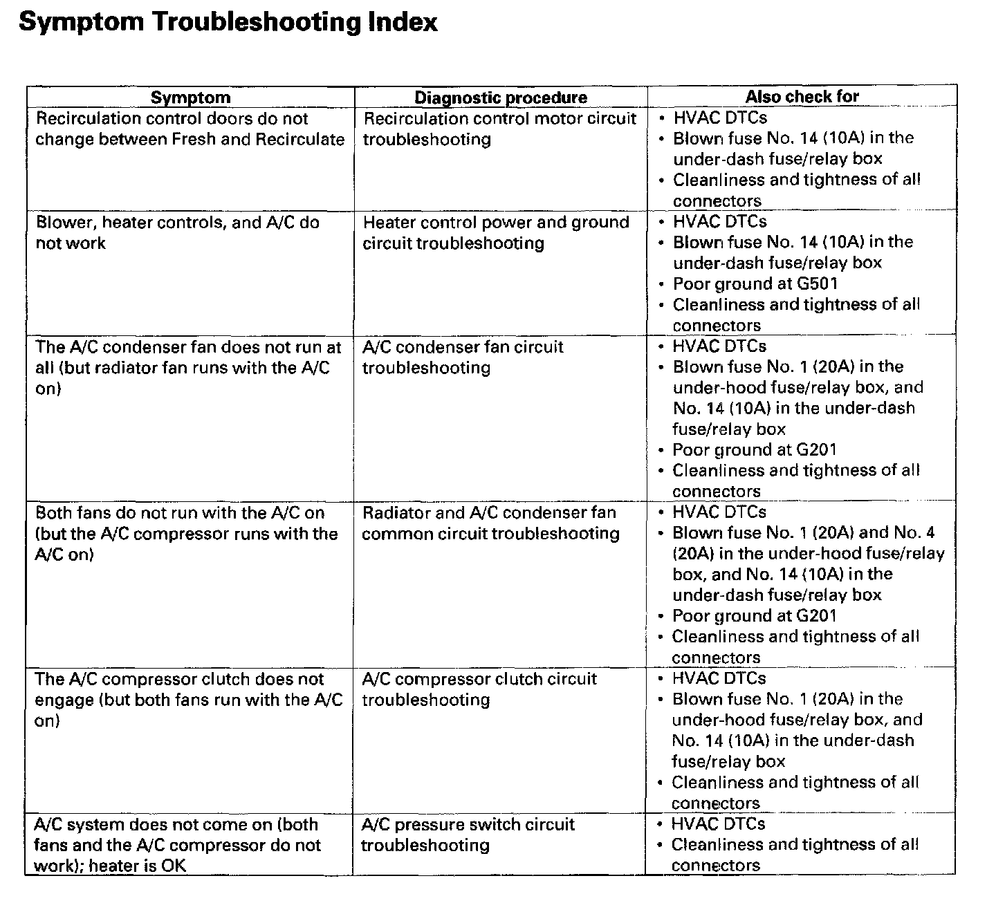 Symptom Troubleshooting Index: