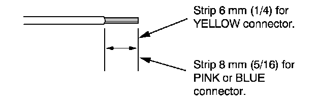 7. If you are using a yellow splice connector, strip about 6 mm (1/4 inch) of insulation off the ends of both wires. If you are using a pink or blue splice connector, strip off about 8 mm (5/16 inch) of insulation.