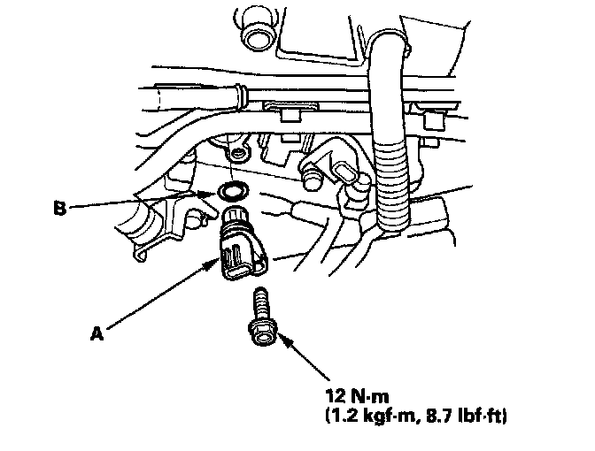 4. Install the sensor in the reverse order of removal with a new O-ring (B).