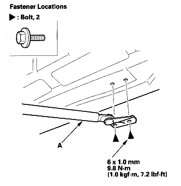 1. Remove the bolt securing the body side end of the tailgate support strut, then release it from the bracket.