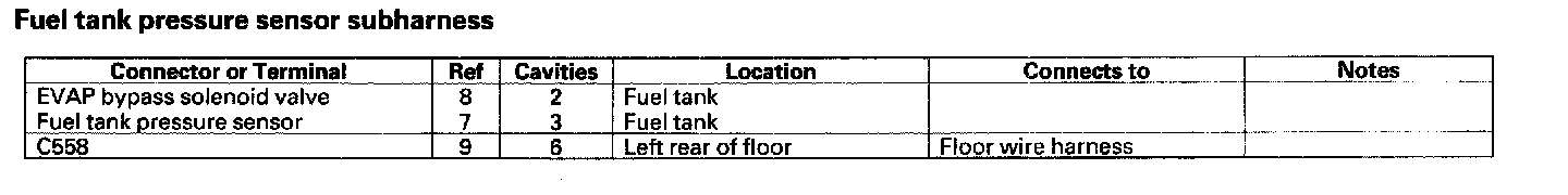 Fuel Tank Pressure Sensor Subharness: