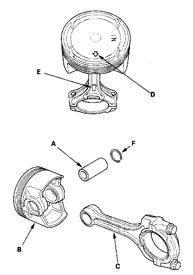 NOTE: Inspect the piston, piston pin, and connecting rod when they are at room temperature.