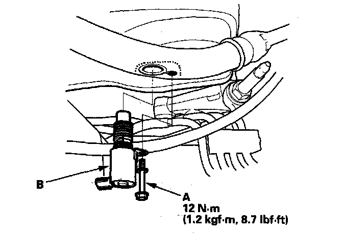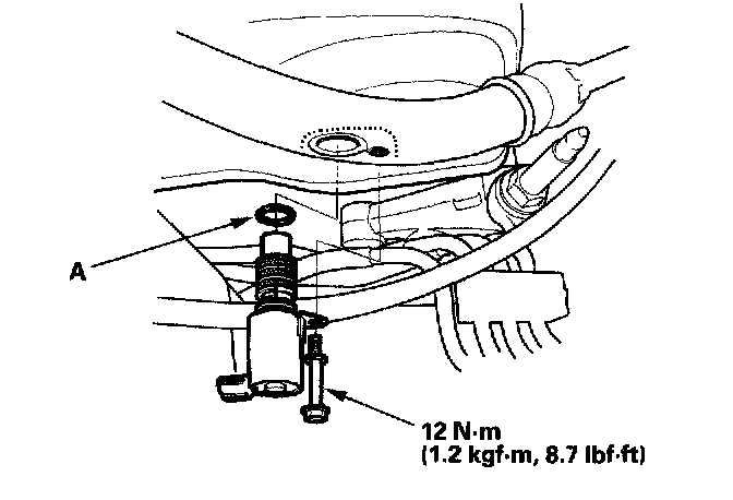 8. Coat a new O-ring (A) with engine oil, then install it.