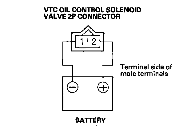 5. Connect the battery positive terminal to VTC oil control solenoid valve 2P connector terminal No.2.