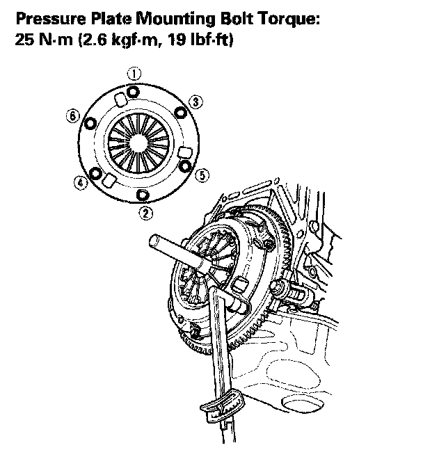 Torque the mounting bolts in a crisscross pattern. Tighten the bolts in several steps to prevent warping the diaphragm spring.