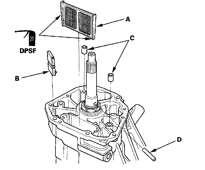 1. Apply Dual Pump Fluid to the rubber of the ATF strainer (A), then install the ATF strainer, the magnet (B), the dowel pins (C), and the oil pump pin (D), in the differential carrier assembly.