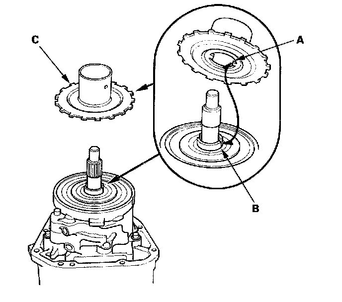 4. Install the thrust needle bearing (C).