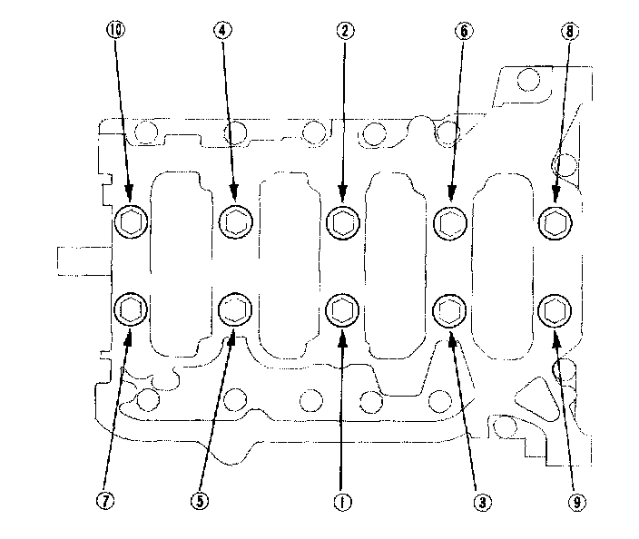 14. Remove old liquid gasket from the lower block mating surfaces, bolts, and bolt holes.