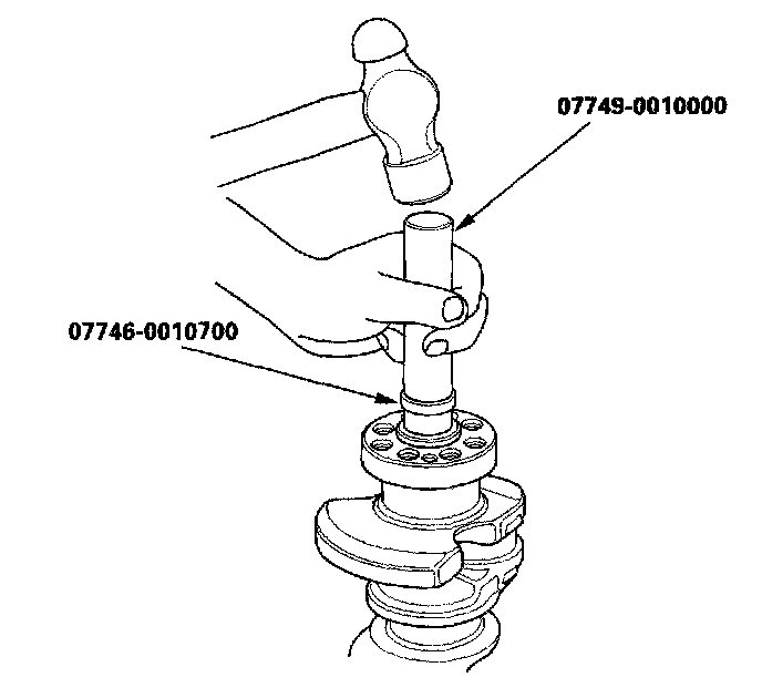 1. With a manual transmission, install the crankshaft end bushing when replacing the crankshaft. Using the special tools, drive in the crankshaft end bushing until the special tools bottom against the crankshaft.