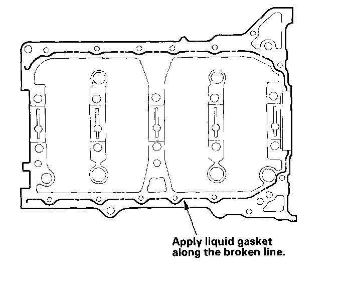 NOTE: Do not install the parts if 4 minutes or more have elapsed since applying liquid gasket. Instead, reapply liquid gasket after removing old residue.