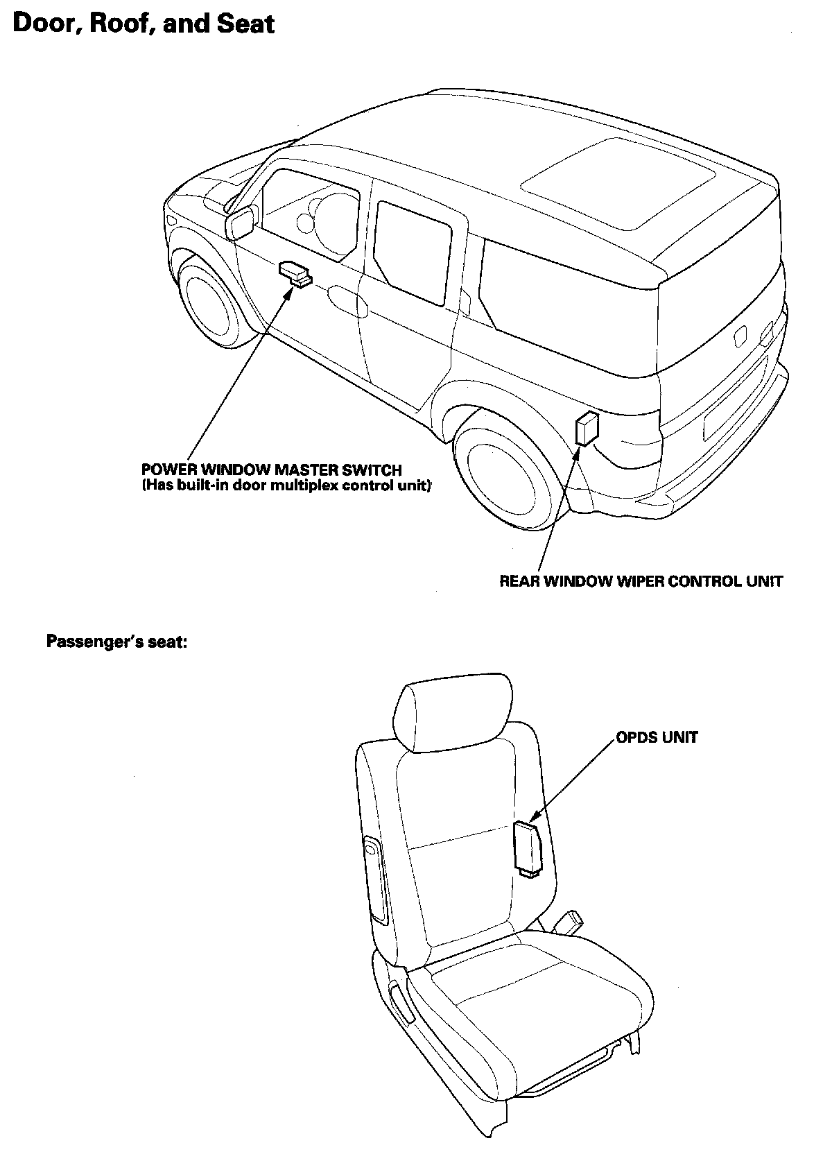 Relay And Control Unit Locations - Door, Roof And Seat: