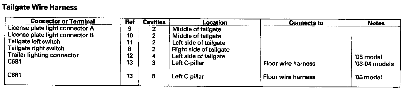 Tailgate Wire Harness: