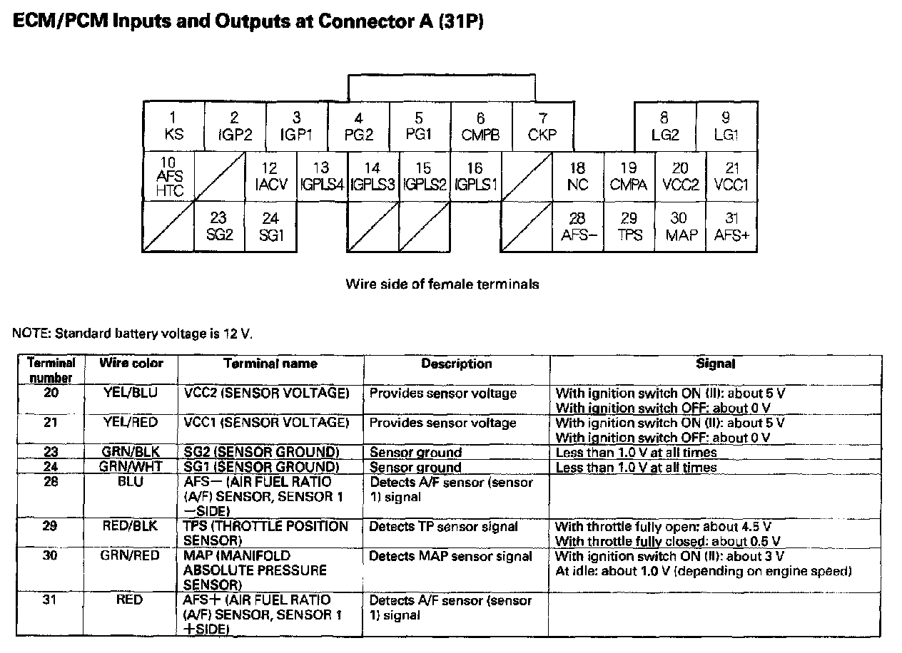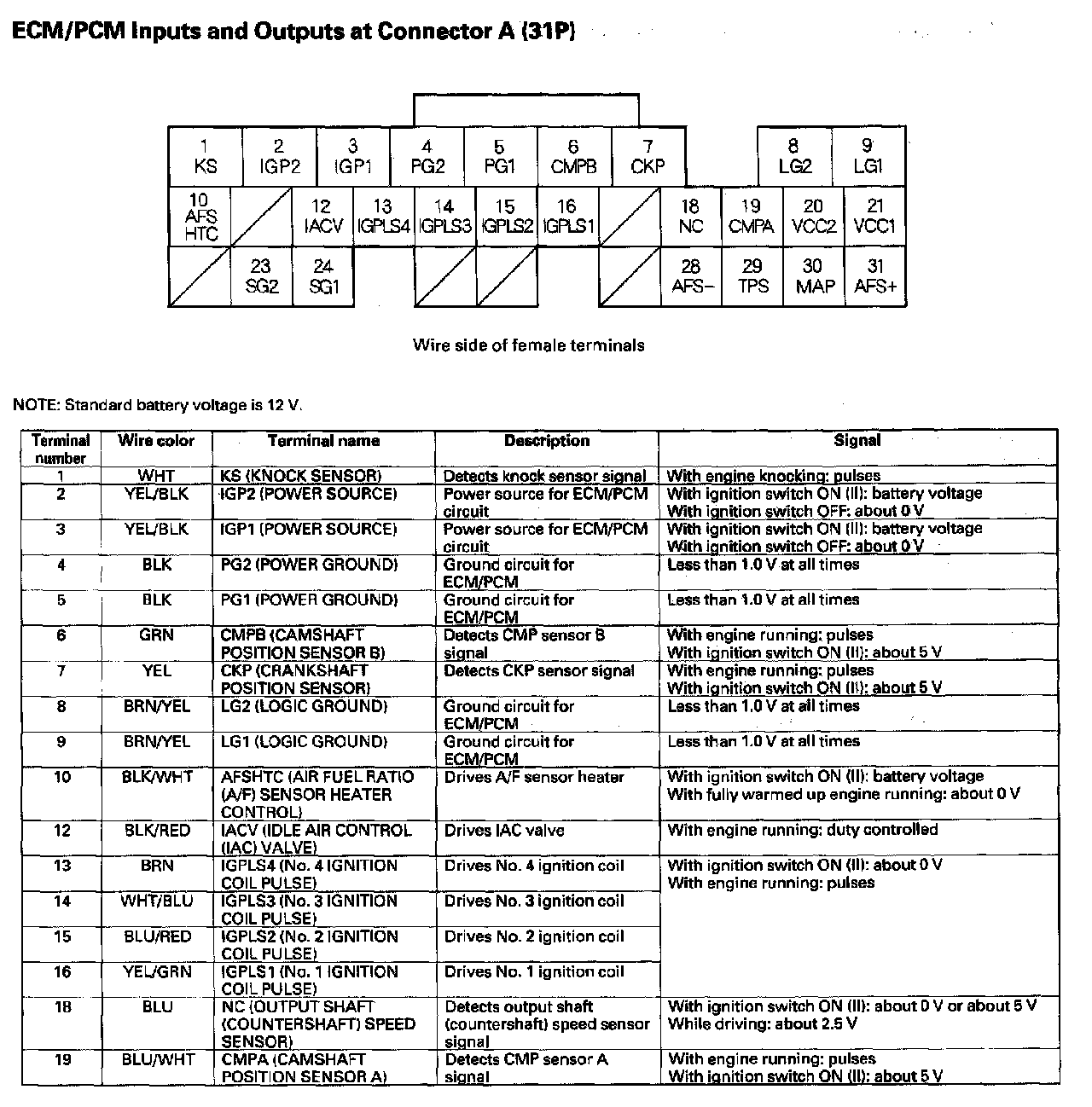 ECM/PCM Inputs And Outputs At Connector A (31P) Part 1: