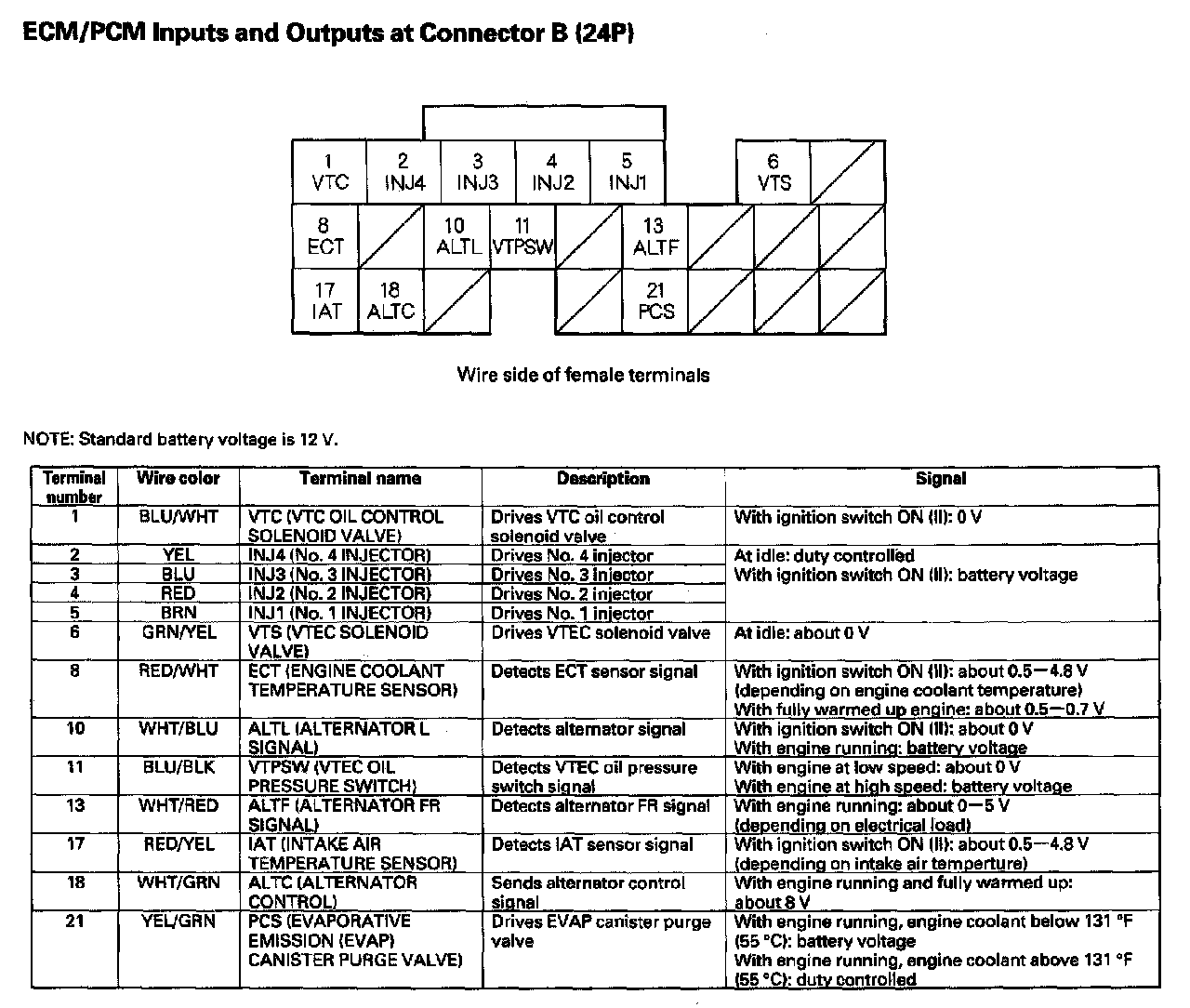 ECM/PCM Inputs And Outputs At Connector B (24P):