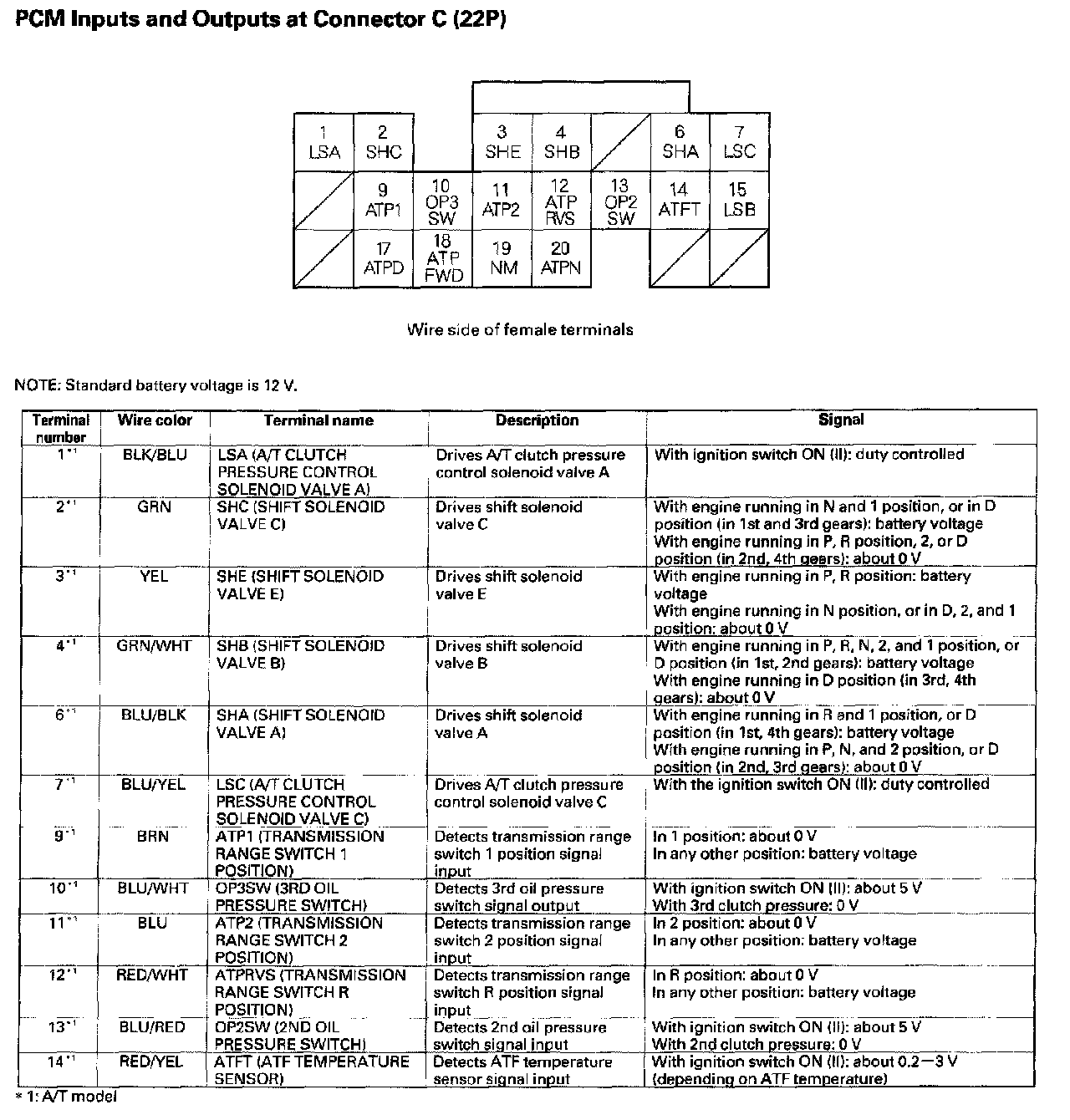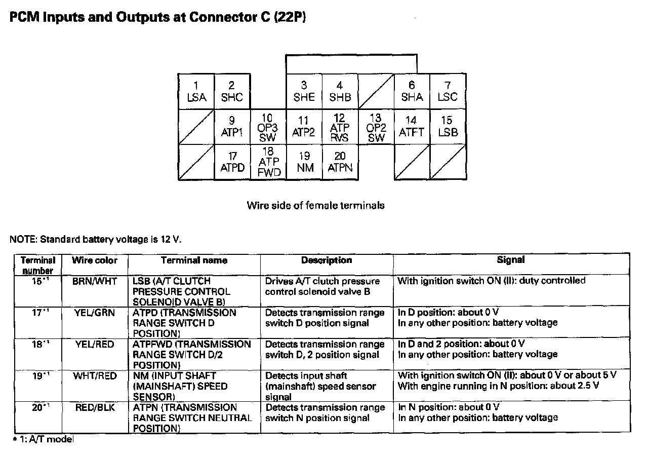 PCM Inputs And Outputs At Connector C (22P) Part 1: