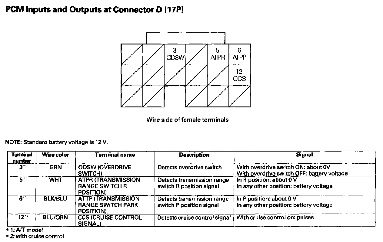 PCM Inputs And Outputs At Connector D (17P):